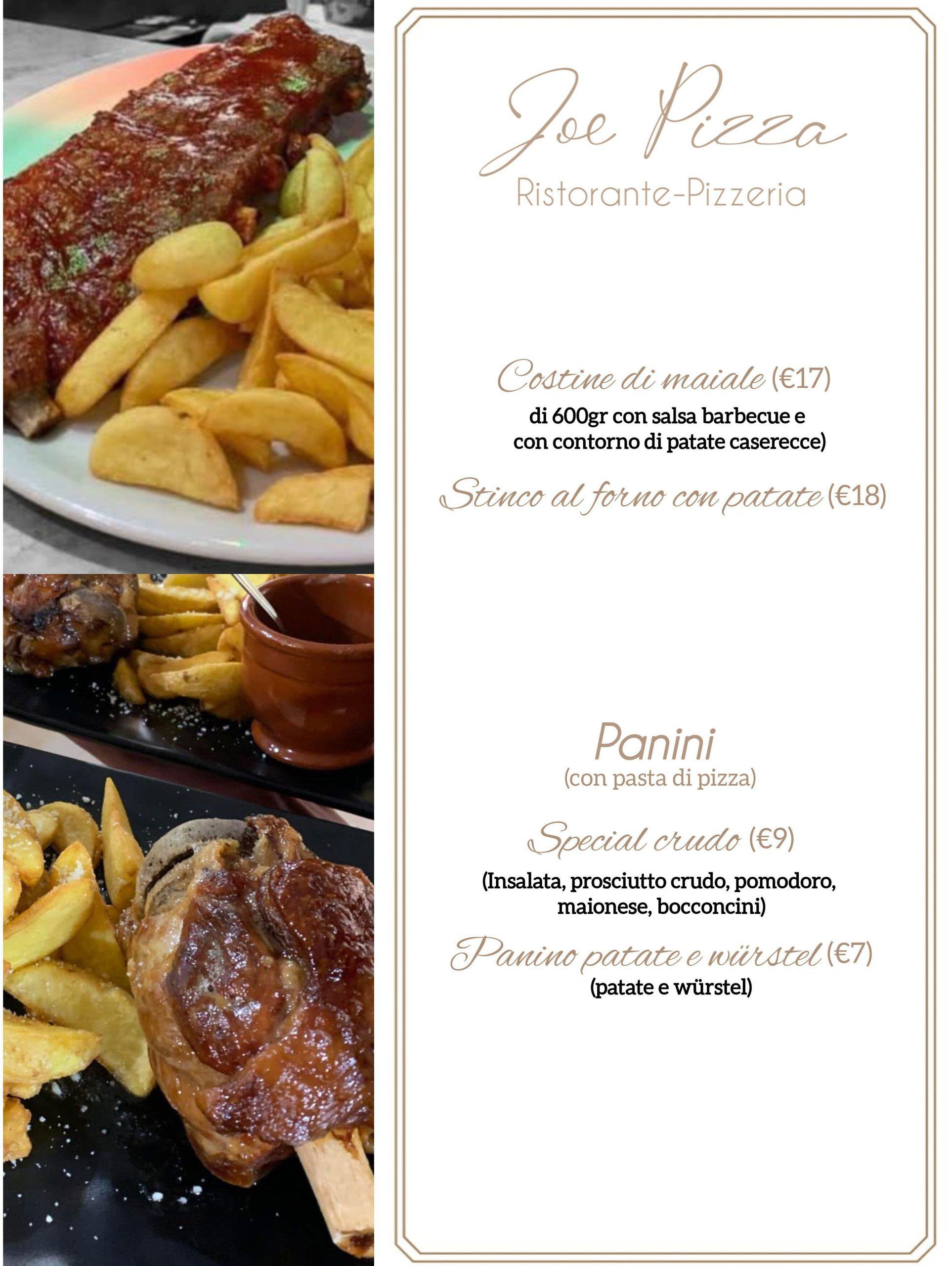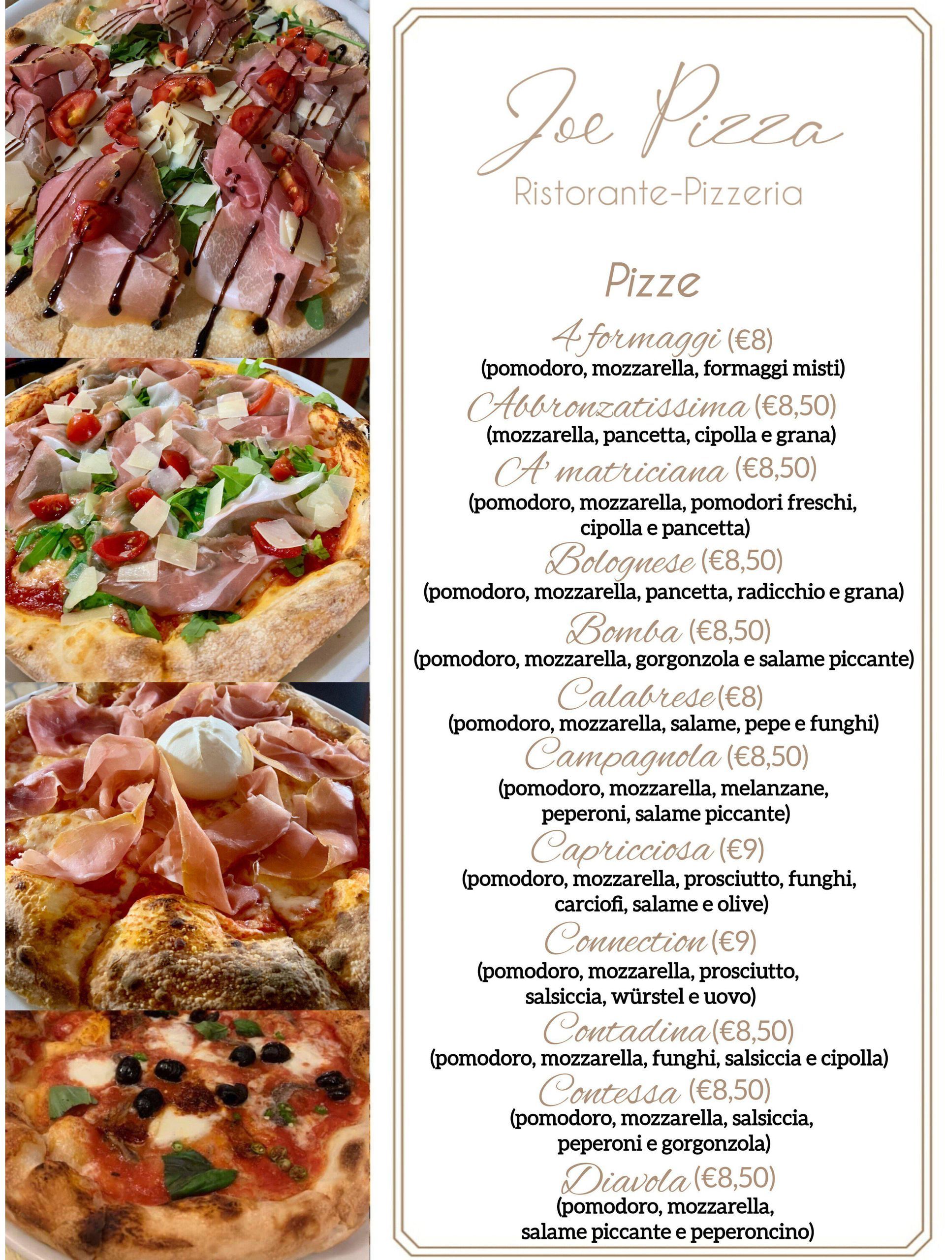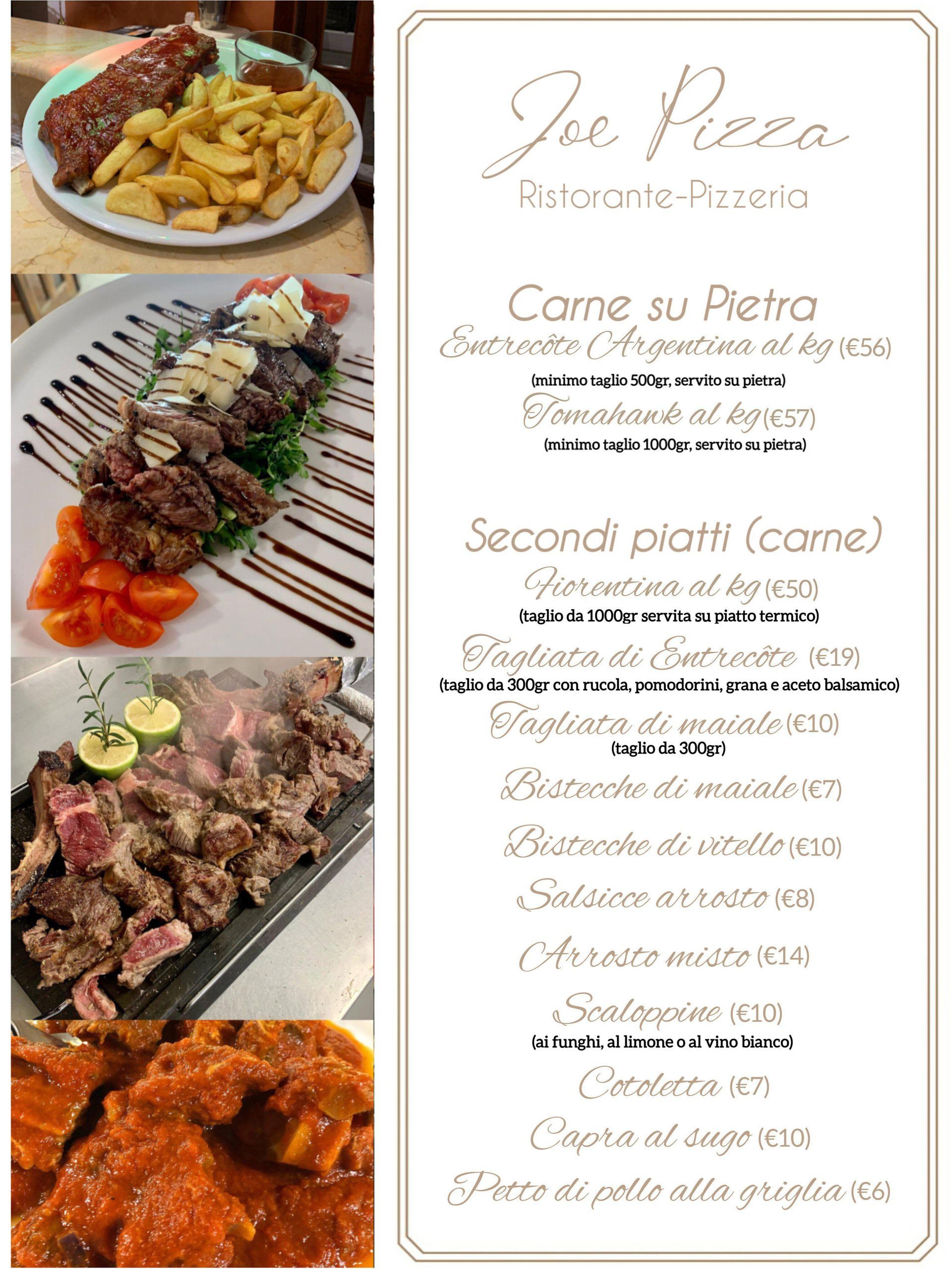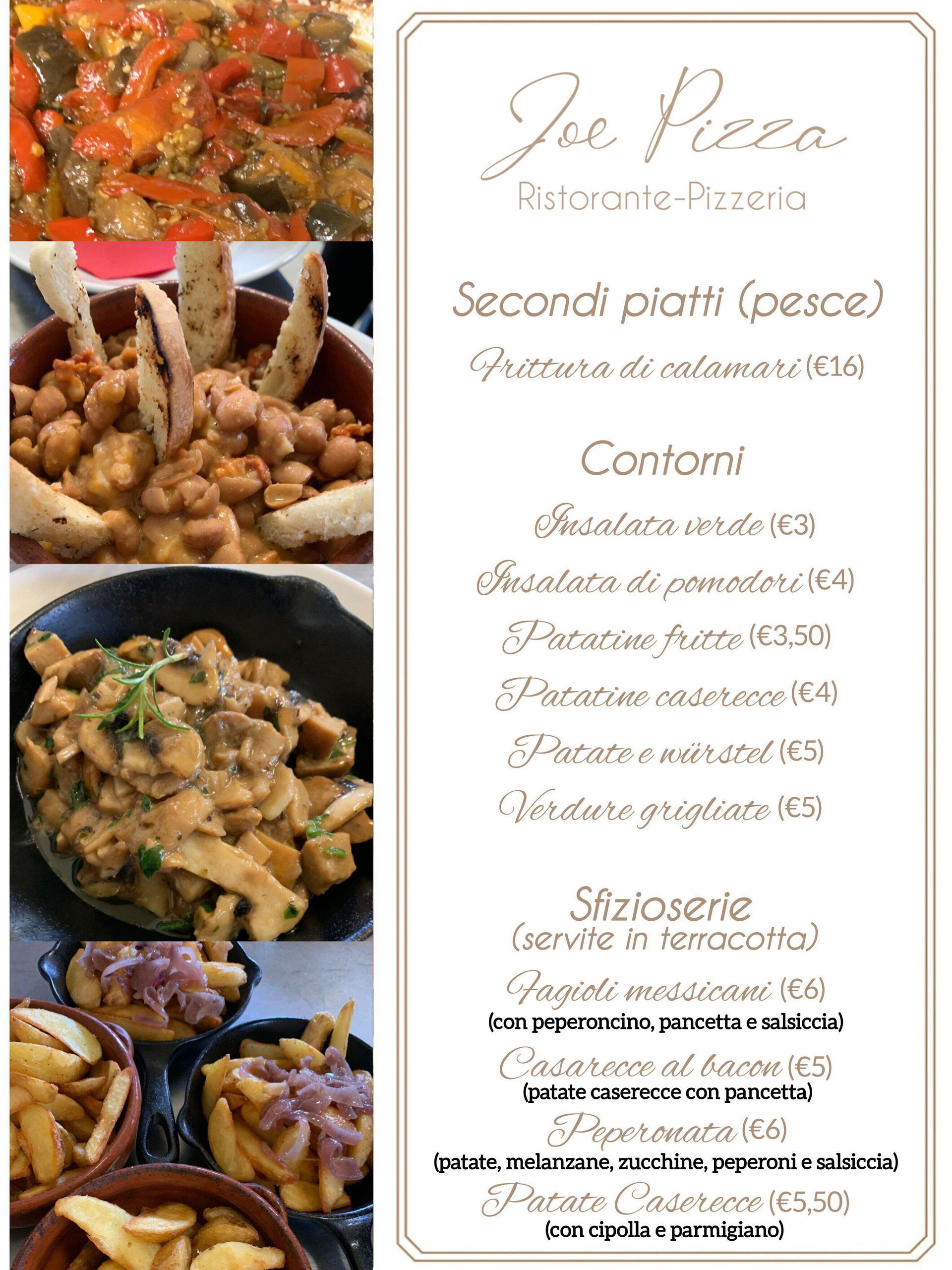 La cucina della Pizzeria Ristorante Joe Pizza propone un menù semplice e gustoso con piatti tipici calabresi,