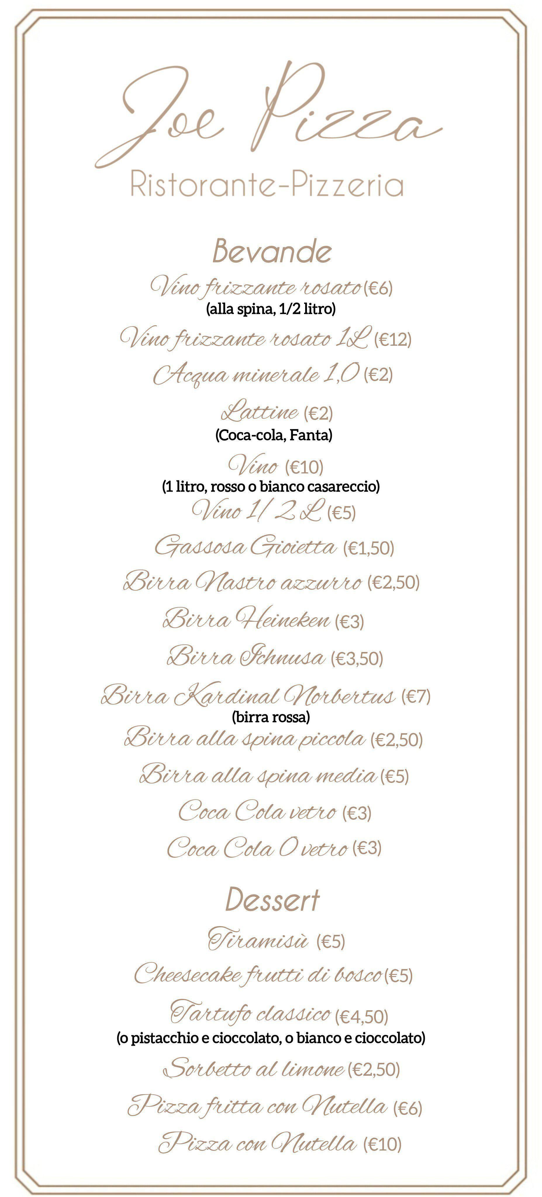 Nel mese di Agosto Joe Pizza è sempre aperto dal Lunedì alla Domenica.